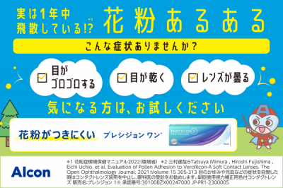 1日中うるおって、花粉がつきにくいワンデーコンタクトレンズ