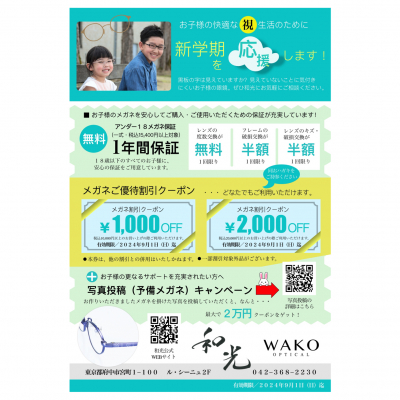 お子様の新学期・新生活を応援させていただいております
